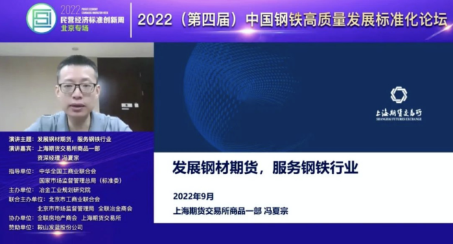 9月6日, 2022(第四屆)中國鋼鐵高質量發展標準化論壇暨2022民營經濟標準創新周北京專場在北京以“線上+線下”形式成功召開。與會領導與行業專家代表共同研究探討綠色低碳高質量發展要求下強化標準支撐引領作用,助力我國鋼鐵工業以“雙碳”目標為指引,深入推進標準化工作改革,不斷提升創新能力和競爭優勢。