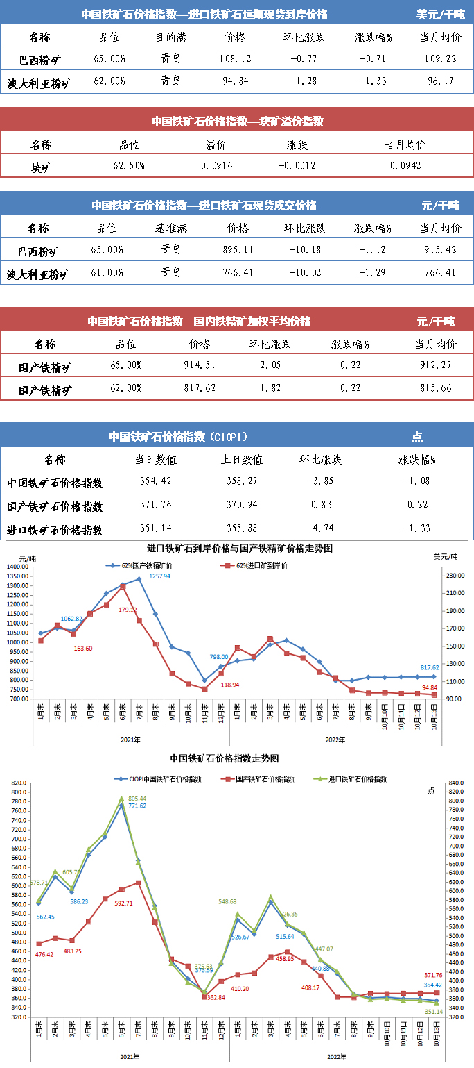 【行業指數】10月13日中國鐵礦石價格指數