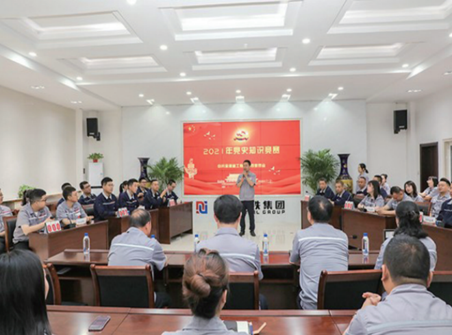 圖為金鼎鋼鐵2021年黨史知識競賽場景。