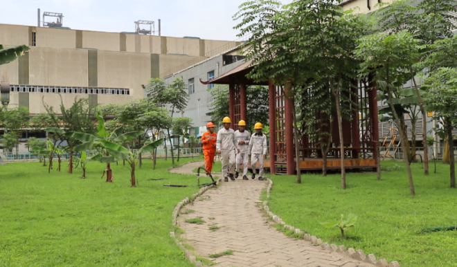 作為我國鋼鐵行業環保標杆德龍鋼鐵的一員,德信鋼鐵在快速發展的同時積極落實環保理念,“德信標準”遠超當地環保標準,經第三方檢測,顆粒物、二氧化硫、一氧化氮的實際排放數值分別為印尼當地環保標準的 17.57%、0.55%、1.83%。為了打造環境優美的綠色工廠,德信鋼鐵還在工廠的通道兩側栽種了大量樹木,打造出了綠色景觀。