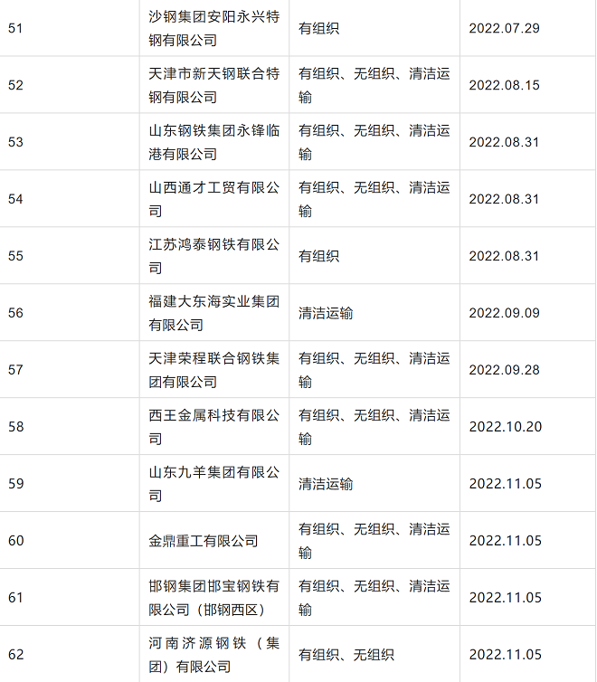 已公示超低排放改造鋼企增至62家