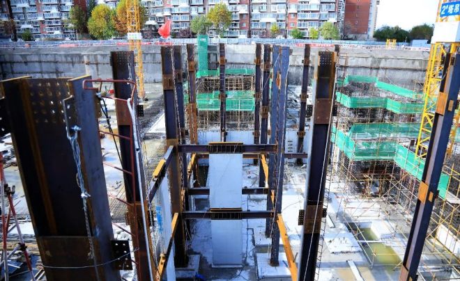 施工現場已經吊裝完成的熱軋H型鋼