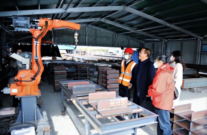 中國冶金報社報道組一行調研采訪遊牧工法現場加工H型鋼