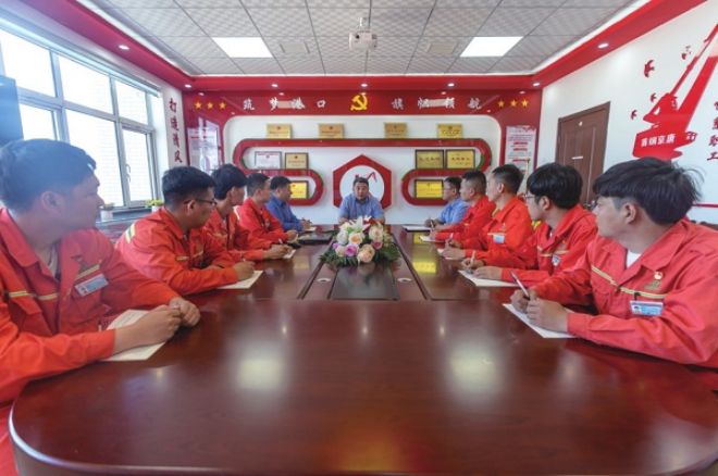 運輸部港口作業區黨支部開展“人人降本處處增效”專題研討活動。(宋厚嶺 攝)