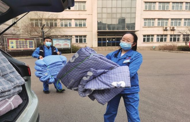 能環部黨委為駐廠保產職工協調被褥,保證休息質量。(尹鬆鬆 攝)