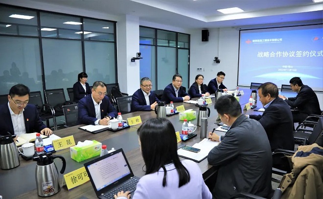 簽約儀式前,雙方進行了座談交流。馮占立首先對陳玉千一行蒞臨鞍鋼工程技術公司交流指導表示熱烈的歡迎,而後從企業概況、發展沿革、主要產業、品牌實力等方麵介紹了鞍鋼工程技術公司的基本情況。他表示,鞍鋼工程技術公司前身是鞍鋼集團設計研究院,至今已有近70年的發展曆史,近年來,被鞍鋼集團推薦成為國務院國資委“雙百行動”和發改委“混合所有製改革”雙試點企業,2020年,公司成功實施了混合所有製改革,企業活力動力全麵迸發,呈現高速發展新局麵。2021年在全國勘察設計行業百強企業中排名第60位。今年7月,被國務院國有企業改革領導小組辦公室授予“雙百標杆企業”稱號。公司在中國冶金行業設計單位和工程公司中擁有最為完整的專業技術體係,具有工程設計、工程谘詢、勘察測繪等8項國家甲級資質和總承包資格,連續多年被遼寧省認定為高新技術企業,擁有冶金全流程技術服務能力。公司“十四五”戰略發展規劃確定了“8533”發展目標,致力於建設成為世界一流創新型工程技術公司。
