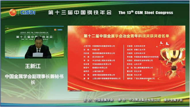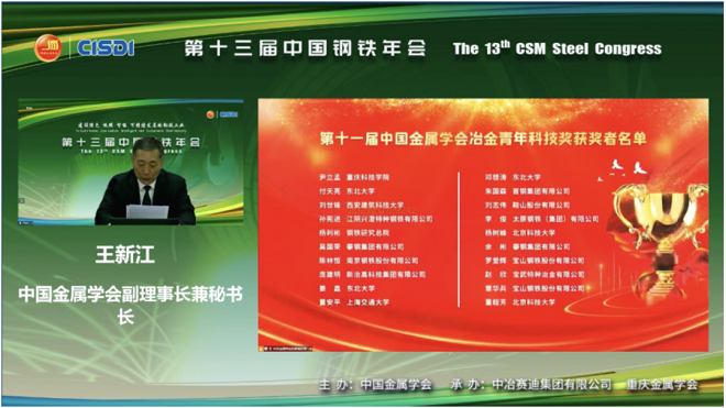 11月23日,受疫情影響,第十三屆中國鋼鐵年會在線上開幕,第十一屆、十二屆中國金屬學會冶金青年科技獎頒獎典禮同期一並舉行,中國金屬學會副理事長兼秘書長王新江宣布了獲獎名單。