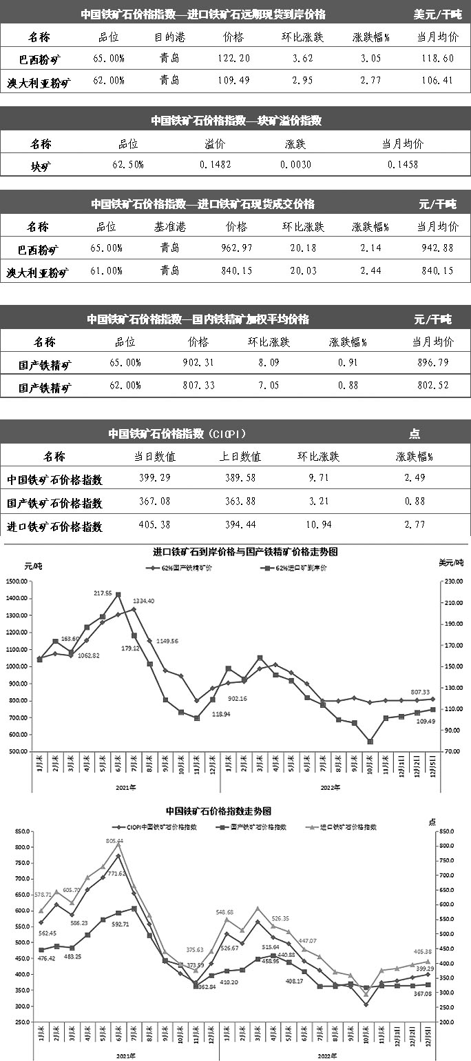 【行業指數】12月5日中國鐵礦石價格指數