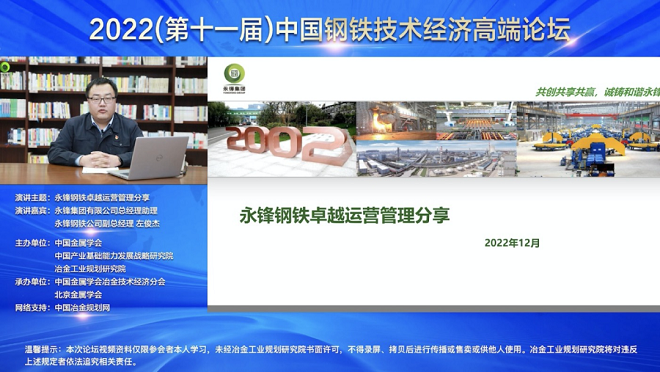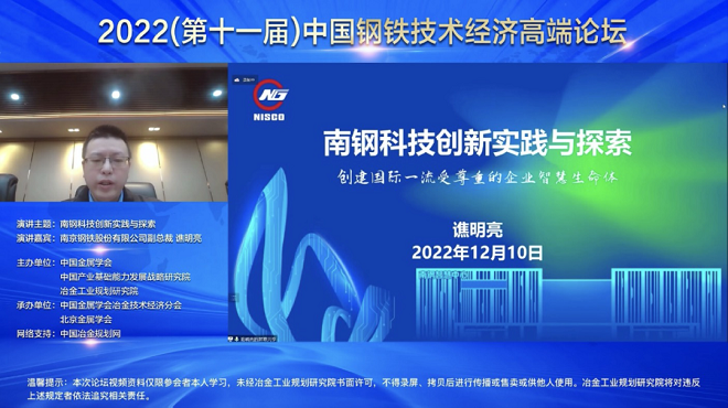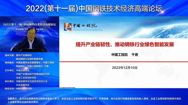 12月10日, 2022(第十一屆)中國鋼鐵技術經濟高端論壇以視頻形式成功舉辦。與會嘉賓圍繞 “科技賦能 卓越運營 鋼鐵新征程”的論壇主題,結合我國鋼鐵行業麵臨的新形勢和新挑戰,積極探討鋼鐵企業科技創新、綠色低碳發展與卓越運營之路,為推動鋼鐵工業高質量發展共謀良策。