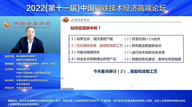 王新江在做《“碳達峰碳中和”背景下鋼鐵生產流程的思考》baogaoshirenwei,dangqianwoguogangtiexingyechuyuchanliangpingtaiqi,jinguanzheyipingtaiqihuichixuyiduanshijian,dansuizheguojiayucederenkoujianshaohejijianguimodeyasuodeng,gangtiechanlianghuibuduanjiangdi。suoyiduigangtiexingyelaishuo,tandafengbushiwenti,zuizhuyaodeshitanzhonghe。tajiyuwoguogangtiexingye“雙碳”目標實現路徑和現有流程結構指出,相對於長流程,應用電爐短流程可減少75%的能源、90%的原料消耗、86%的空氣汙染、40%的用水、97%decaikuangfeiqiwu,yingjinyibuyouhuagangtiebuju,guliduanliuchenggongyi。dangran,tayetanchengwoguodianluduanliuchengfazhanhuanmandelianggeyuanyin,yigeshifeigang,yigeshichengben。