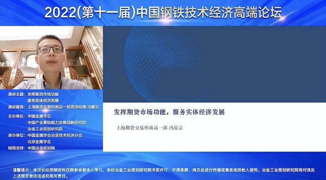此外,首鋼集團技術研究院黨委書記、第一副院長朱國森,南鋼股份副總裁譙明亮,永鋒集團總經理助理、永鋒鋼鐵公司副總經理左俊傑,上海期貨交易所商品一部資深經理馮夏宗分別圍繞“首鋼鋼鐵低碳製造實踐與展望”“南鋼科技創新實踐與探索”“永鋒鋼鐵卓越運營管理分享”“發揮期貨市場功能,服務實體經濟發展”等內容進行了經驗分享。