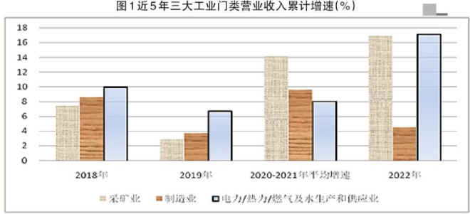 總體看,采礦業2022年營業收入、利潤、營業收入利潤率、工業增加值增速均出現超常態增長;受采礦業多數大類行業出廠價格上漲因素及需求轉弱的影響,製造業利潤出現較大幅度下降;電力/熱力/ranqijishuishengchanhegongyingyeshouchuchangjiageshangzhangyingxiang,yingyeshourudafuzengchang,danyinglishuipingyiranshoudaocaikuangyechuchangjiageshangzhangdezhiyue。sandamenleiyinglishuipingchuxianchayi,bujunhengxingyousuoxianxian。2023年需要理順三大工業門類的價格傳導機製,努力構建三大工業門類均衡發展的態勢。