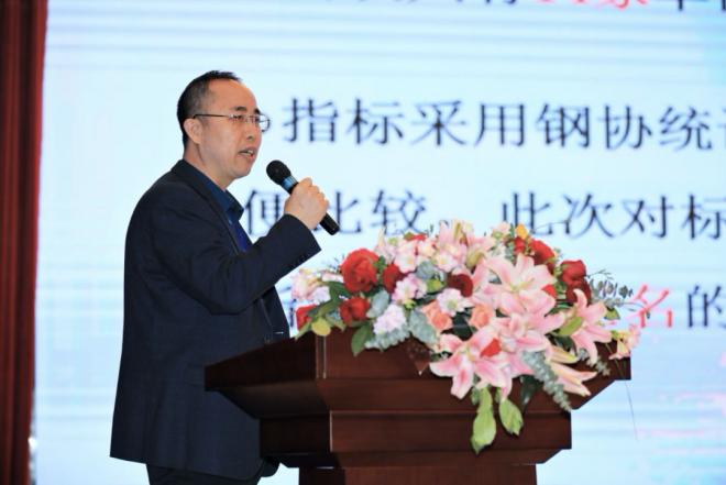 酒鋼宏興股份公司副總經理侯名強通報了論壇成員單位2022年對標對表情況。