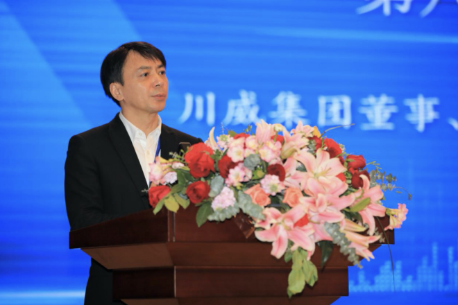 會上,程子建與川威集團董事、成渝釩鈦科技有限公司首席執行官代賓共同完成了會旗交接。