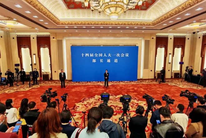 3月12日,第十四屆全國人民代表大會第一次會議舉行第三場“部長通道”采訪活動。這是國家統計局局長康義接受媒體采訪。新華社記者 金皓原 攝