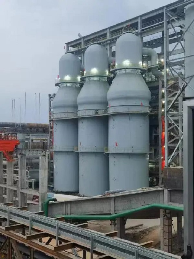 廣西翅冀鋼鐵有限公司目前有2座2060m³高爐配置了6座豫興四段式頂燃式熱風爐,熱風爐單燒高爐煤氣,空煤氣雙預熱,平均熱風溫度≥1250℃。此次投產的2號高爐,配置的3座豫興四段式頂燃式熱風爐於2022年8月5日開始施工,10月17日熱風爐本體完工,12月14日管道部分完成施工,12月25日烘爐並護航高爐投產!為wei提ti高gao勞lao動dong生sheng產chan率lv和he保bao證zheng產chan品pin質zhi量liang,豫yu興xing公gong司si結jie合he用yong戶hu生sheng產chan實shi際ji現xian狀zhuang,避bi免mian功gong能neng過guo剩sheng,對dui具ju有you前qian瞻zhan性xing的de先xian進jin技ji術shu預yu留liu今jin後hou發fa展zhan可ke能neng,采cai用yong成cheng熟shu、可靠、先進、實用的熱風爐技術,做到技術先進、布置合理、水平適當,確保生產順行,操作維護簡捷方便。