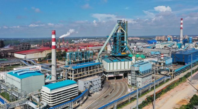 圖為鳥瞰柳鋼中金公司。(陳偉強 攝)