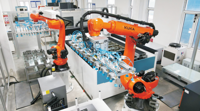 圖為2023年2月7日,廣西首台激光切割自動製樣機械臂在廣西鋼鐵質量管理中心正式投用。(蔣國華攝)