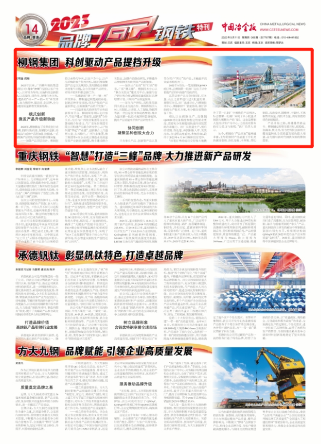 2022年以來,廣西柳州鋼鐵集團有限公司(簡稱“柳鋼”)堅持以客戶為中心,以市場為導向,實施科技創新驅動,以高端化、綠色化、智能化為方向,構建新的“研-產-銷-用”研發體係,加力增品種、提品質、創品牌,全力構建高質量轉型發展新格局。