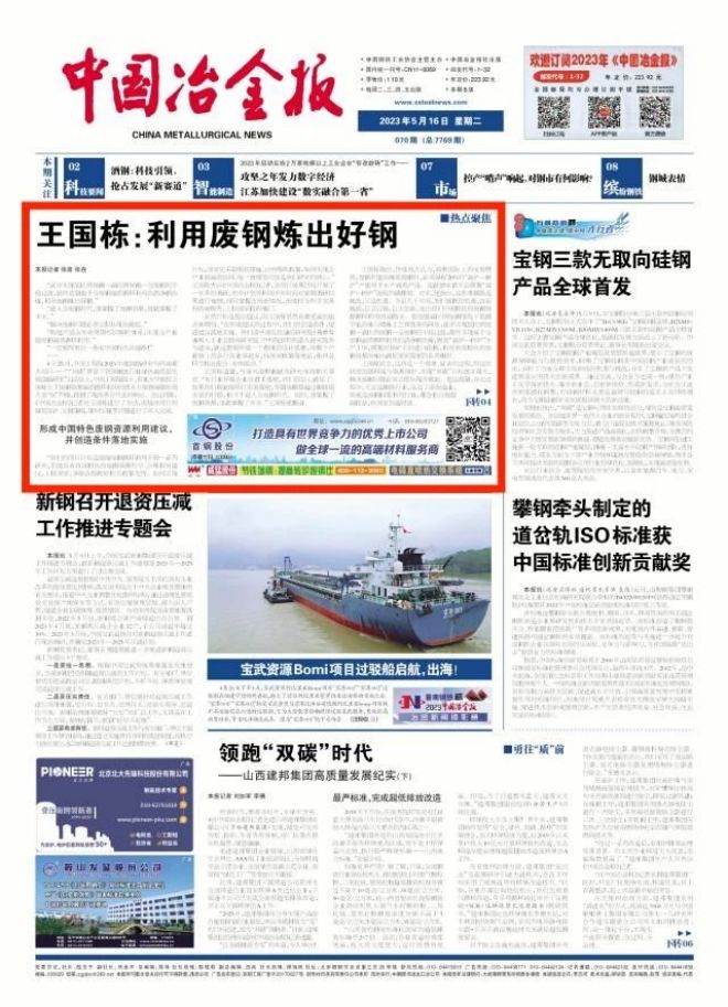 “當前,我國推進廢鋼資源管理、循環和再利用麵臨哪些挑戰?”麵對《中國冶金報》記者的這一問題,王國棟從廢鋼回收本身和全產業鏈協同兩個方麵進行了分析,並給出了解決方案。