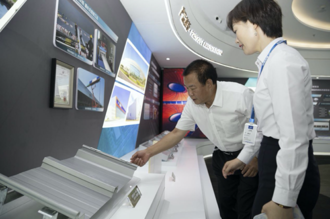 近年來,森特與隆基不僅共同研發出建築屋麵與太陽能光伏組件的一體化係統和產品,還持續推進係統升級。2023年,經過3年的潛心研究和近千次試驗,隆頂3.0 BIPV正式發布。與安裝型屋頂光伏(BAPV)相比,隆頂3.0 BIPV具有抗台風、A級防火、抗衝擊、可踩踏、防滲漏、防腐蝕、降能耗、美觀性強等明顯優勢。目前,隆基森特的BIPV已應用於寶武太鋼不鏽、博鼇論壇、山東重工集團、徐工集團、騰訊數據中心等多個項目,在冶金行業目前正在服務的企業還有首鋼股份、陝鋼集團漢鋼公司等。