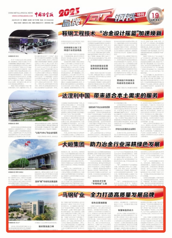 近年來,中國寶武資源馬鋼礦業以全麵打造高質量發展品牌為目標,積極提升服務客戶能力及綠色發展、智慧製造水平,有效提高了企業品牌的知名度和美譽度。