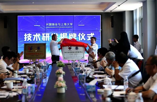 上海大學張玉文教授與興國公司總經理周國成為“氫能冶金低碳技術研發中心”揭牌