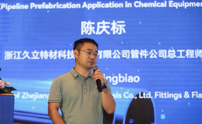 浙江久立特材科技股份有限公司管件公司總工程師陳慶標做了《管路預製在化工裝備中的應用》的報告,介紹了工廠化預製管道的現狀、項目應用案例以及發展趨勢。他表示,從縮短安裝周期、減少環境汙染、減少安裝事故、降低綜合成本、提高安裝質量等方麵來看,大力發展管道係統的工廠預製是必然趨勢,而係統化、軟件化、信息化、自動化、綜合化、標準化是工廠化管道預製的發展趨勢。