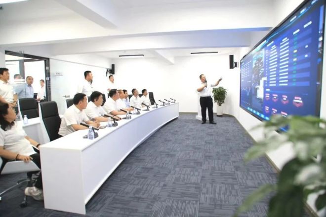 圖為采訪組參觀國家鋼結構製作工程技術中試基地指揮中心
