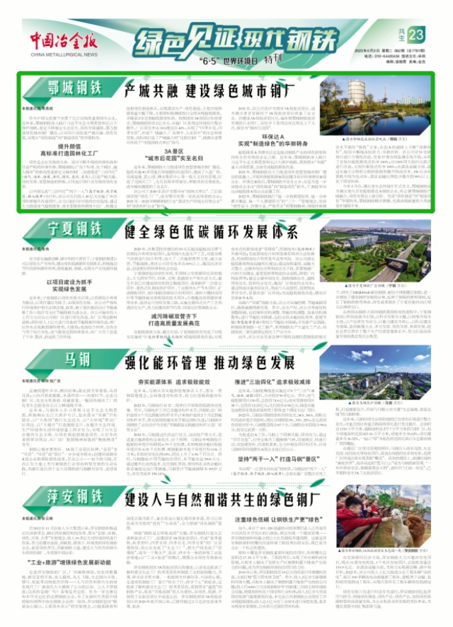作zuo為wei中zhong國guo寶bao武wu旗qi下xia坐zuo落luo於yu長chang江jiang沿yan線xian的de重zhong要yao國guo有you企qi業ye,近jin年nian來lai,鄂e城cheng鋼gang鐵tie深shen入ru踐jian行xing習xi近jin平ping生sheng態tai文wen明ming思si想xiang和he長chang江jiang大da保bao護hu戰zhan略lve,堅jian定ding不bu移yi地di走zou生sheng態tai優you先xian、綠色發展道路,強力推進綠色城市鋼廠建設,以實際行動促進產城共融、綠色發展,實現從“綠色製造”向“製造綠色”的華麗轉身。