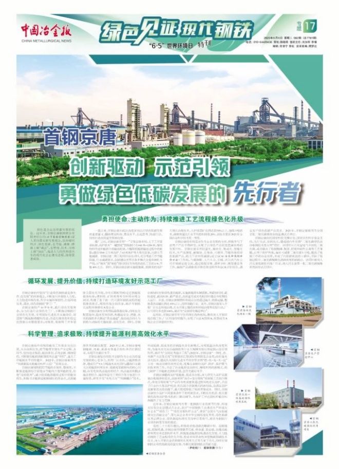 近年來,首鋼京唐被列為第一批鋼鐵行業資源節約型、環境友好型企業創建試點企業,獲評“中國鋼鐵工業清潔生產環境友好企業”“綠色工廠”“綠色發展標杆企業”,榮獲“全國大氣汙染減排突出貢獻企業”、第九屆企業類中華寶鋼環境優秀獎、綠色低碳優秀品牌企業、綠色製造標準化支持單位等稱號,被譽為鋼鐵行業綠色轉型發展的典範。