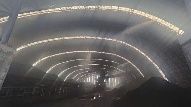 圖為盛隆冶金原料大棚幹霧抑塵