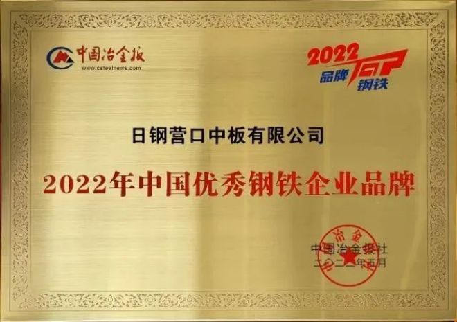 2022年,日鋼營口中板有限公司榮獲中國優秀鋼鐵企業品牌榮譽。