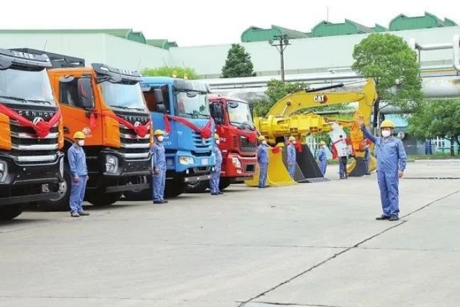 圖為中冶寶鋼更新工程機械和運輸車輛在寶鋼股份寶山基地有序投入使用。