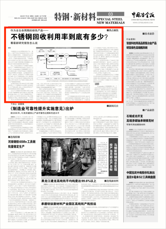 作為全生命周期的綠色產品——不鏽鋼回收利用率到底有多少?看最新研究報告怎麼說