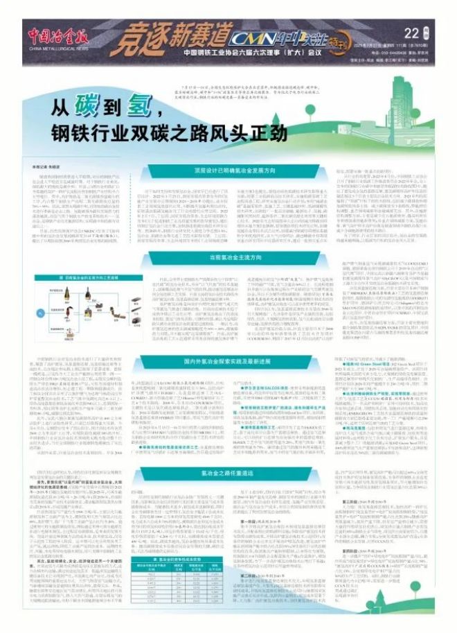 中國鋼鐵行業對氫冶金技術進行了大量研究和探索,覆蓋了高爐富氫、氫基直接還原、氫基熔融還原等主流技術,且在理論和實踐上都已取得了顯著進展。值得一提的是,以氫作為大工業生產能源應用的第一例——河鋼全球首例120萬噸氫冶金示範工程,實現安全順利連續生產綠色DRI(直接還原鐵)chanpin,kezuoweigaoduancailiaozhizaogaopinzhijiejingyuanliao,biaozhizhegongchengyiqiqudeyuanmanchenggong。gaigongchengzaiquanqiushoucicaiyongleyijiaolumeiqiweihaiyuanqitidegaoyashululingzhongzhengqingyejinjishu,gongyiqitizhongqingtanbigaoda8∶1以上,綠色高純直接還原鐵金屬化率達到94%以上,達到國際一類標準,相比同等高爐長流程生產每年可減少二氧化碳排放80萬噸,減排比例達到70%。
