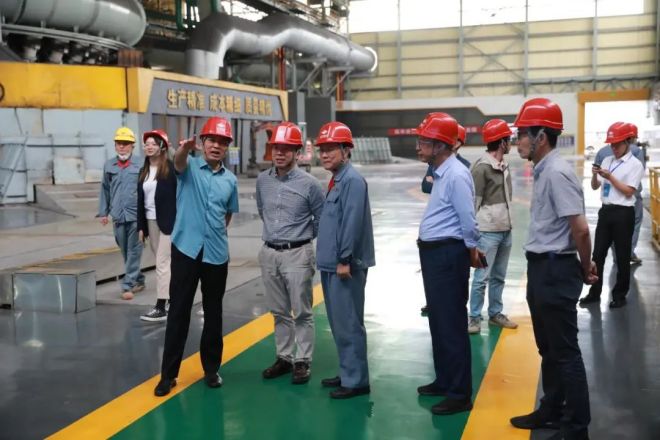 圖為與會人士參觀山鋼股份萊蕪分公司