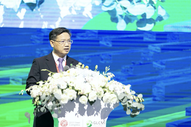 “gangtiexingyedetanzhongheduiquanqiuyingduiqihoubianhuaxingdongjuyouzhongyaozuoyong,quanxingyebixuningjulvseditanzhuanxinggongshi,yikejichuangxinweiqudong,dalituijinguojijiaoliuyuhezuo,jijikaizhanditanlvsezhuanxingxingdong,weigoujiangangtielvseditanshengtaiquanernuli。”10月15日,在第十二屆中國國際鋼鐵大會暨2023年全球低碳冶金創新論壇上,中國寶武董事長胡望明在做題為《中國寶武低碳冶金實踐與思考》的主旨演講時提出。