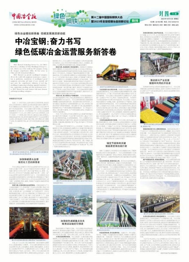 黨的二十大報告指出,加快發展方式綠色轉型,推動經濟社會發展綠色化、低碳化是實現高質量發展的關鍵環節。作為支撐國民經濟發展的支柱性行業,鋼鐵工業是實現“雙碳”目標的重要領域。中冶寶鋼技術服務有限公司(簡稱中冶寶鋼)作為中國五礦、zhongyejituanqixiazhuanmencongshiyejinyunyingfuwudezhongyaoguganziqiye,shenruguanchexijinpingshengtaiwenmingsixiang,renzhenxuexidangdeershidajingshen,jianxinglvshuiqingshanjiushijinshanyinshandelinian,weiraogaozhiliangfazhanzhuxian,balvseditanfazhanguanchuanyuyejinyunyingfuwuquanliucheng,jiakuaituijinjishuchuangxin、模式革新、服務更新,助力鋼鐵產業鏈、供應鏈轉型升級,奮力書寫綠色低碳高質量發展新答卷。