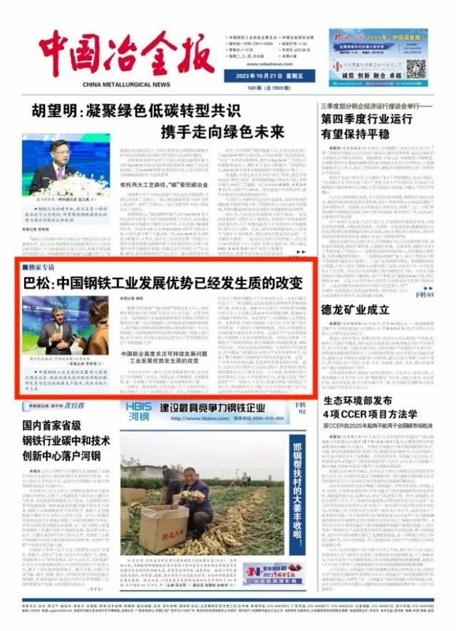 巴鬆:中國鋼鐵工業發展優勢已經發生質的改變