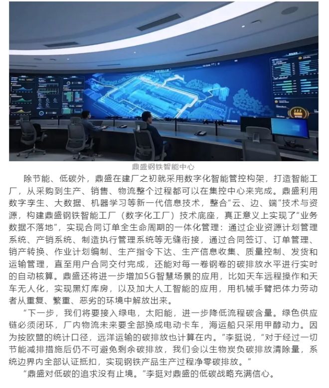 “我們投建鼎盛鋼鐵,就是為了在低碳綠色鋼鐵領域取得先機。”李挺說。