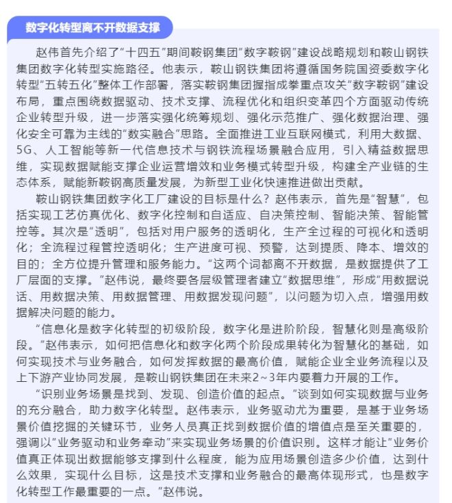 趙偉:讓數據驅動在鋼鐵數字化轉型中發揮更大作用