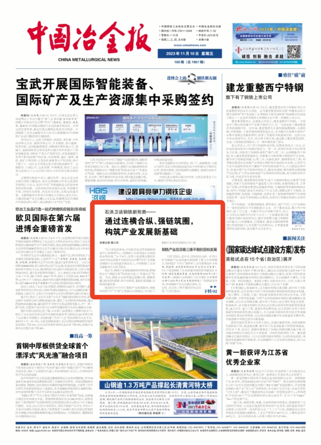 他認為,鋼鐵行業麵臨著新的市場環境,即鋼鐵業從“增量發展”階段逐步進入“存量優化”階段。為此,鋼鐵企業亟須通過連橫合縱、強鏈築圈,推動綠色低碳、數字化轉型,重構經營基礎,實現高質量發展。