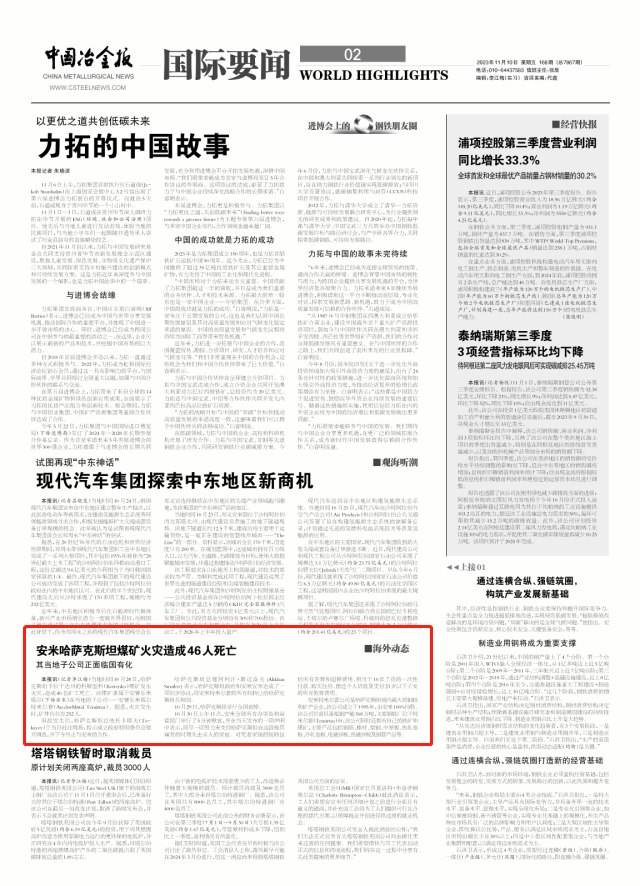 當地時間10月28日,哈薩克斯坦卡拉幹達州的科斯堅科(Kostenko)煤礦發生火災,造成46名礦工死亡。該煤礦隸屬於安賽樂米塔爾(下稱安米)在當地的子公司——安賽樂米塔爾特米爾套(ArcelorMittal Temirtau)。據悉,火災發生時,礦井內共有252人。