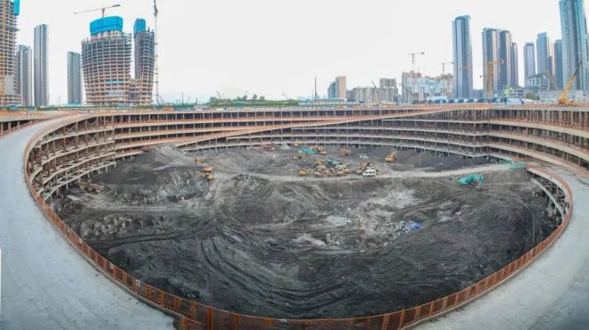 采訪組一行還在座談會前後在中冶武勘企業展廳和全國首個超大型圓環支撐體係的地下空間結構、圓環支撐直徑達到188米的武漢周大福金融中心深基坑項目現場進行參觀,直觀感受到了中冶武勘在勘察設計、智慧應用、新能源等領域的強勁實力和快速發展。