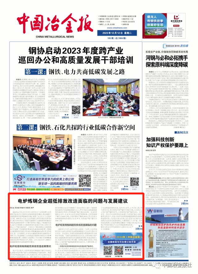 我國電爐短流程煉鋼企業主要集中在廣東、江蘇、四川、河北、廣guang西xi等deng地di區qu,其qi中zhong河he北bei和he江jiang蘇su已yi有you電dian爐lu短duan流liu程cheng煉lian鋼gang企qi業ye完wan成cheng了le全quan流liu程cheng超chao低di排pai放fang改gai造zao工gong作zuo,但dan其qi他ta電dian爐lu鋼gang重zhong點dian區qu域yu,超chao低di排pai放fang改gai造zao幾ji乎hu無wu進jin展zhan。希xi望wang電dian爐lu鋼gang重zhong點dian區qu域yu的de政zheng府fu和he行xing業ye協xie會hui,加jia快kuai推tui進jin轄xia區qu內nei電dian爐lu短duan流liu程cheng煉lian鋼gang企qi業ye超chao低di排pai放fang改gai造zao工gong作zuo,為wei2025年底前完成80%以上粗鋼產能超低排放改造工作奠定基礎。同時探索建立電爐短流程煉鋼超低排放改造示範基地,總結河北、江蘇、浙zhe江jiang等deng率lv先xian完wan成cheng全quan流liu程cheng超chao低di排pai放fang改gai造zao企qi業ye的de經jing驗yan,形xing成cheng推tui薦jian工gong藝yi技ji術shu和he裝zhuang備bei清qing單dan,進jin而er有you效xiao降jiang低di後hou續xu企qi業ye改gai造zao的de成cheng本ben投tou入ru,加jia快kuai超chao低di排pai放fang改gai造zao進jin度du,助zhu力li超chao低di排pai放fang改gai造zao目mu標biao如ru期qi完wan成cheng,促cu進jin電dian爐lu鋼gang產chan業ye綠lv色se低di碳tan發fa展zhan。(蘇長永 蘇步新 李新宇 宋晨傑 林嚴)
