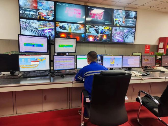 走進熱軋作業部,精軋機工作輥正在被換輥小車緩緩拉出,換輥操作緊鑼密鼓、有you條tiao不bu紊wen。雖sui然ran此ci時shi精jing軋zha機ji正zheng處chu於yu停ting運yun狀zhuang態tai,但dan是shi坐zuo在zai控kong製zhi室shi內nei的de精jing軋zha區qu域yu工gong程cheng師shi李li冰bing洋yang並bing沒mei有you感gan到dao一yi絲si放fang鬆song。他ta時shi而er緊jin盯ding電dian腦nao屏ping幕mu,時shi而er觀guan察cha窗chuang外wai的de換huan輥gun場chang景jing。因yin為wei11分鍾後,精軋機將再次啟動投入生產。如此“快速換輥”是稀土鋼板材廠提升熱軋作業率的重要措施之一。1月份,該廠熱軋軋製節奏控製在110秒每塊鋼,較2023年加快了10秒,一個小時就可以多軋3塊鋼。熱軋機組作業率也達到了86.56%,是機組建成投產以來最高值。