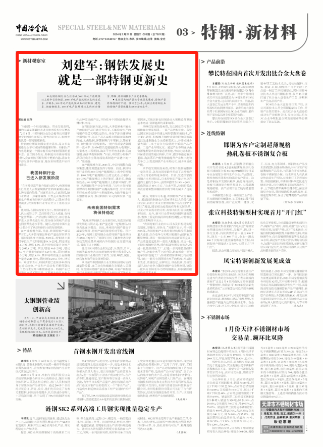 劉建軍:鋼鐵發展史就是一部特鋼更新史