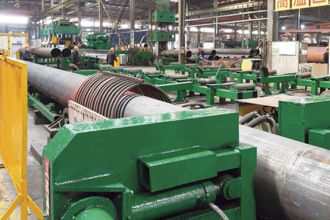 工藝裝備是基礎。“作為國內大口徑無縫鋼管生產的頭部企業,德新鋼管主要采用中頻熱擴工藝,結合熱軋、冷拔和機加工等工藝,為用戶專業生產各種規格、材質和要求的大口徑無縫鋼管。”陳俊德介紹說,“比如,對於外徑大於323毫米、徑壁比大於45和外徑大於508毫米、徑壁比大於25的熱軋機組難以生產的無縫鋼管,以及難以組織生產的焊管,可采用中頻熱擴無縫鋼管。”