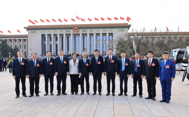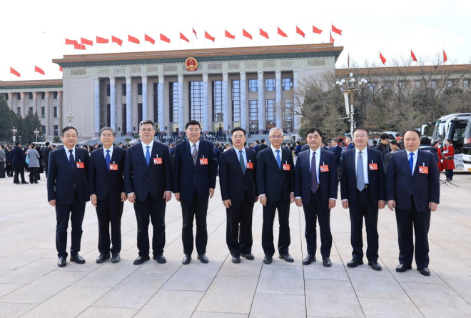 鋼鐵行業代表們在人民大會堂前合影留念,同心共赴新征程